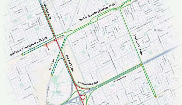 റിയാദ് കിങ് ഫഹദ് റോഡിൽ ഗതാഗത നിയന്ത്രണം; സ്പോർട്സ് ട്രാക്ക് പദ്ധതിക്കായി ക്രമീകരണം