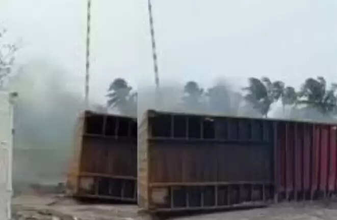 ശക്തികുളങ്ങരയിൽ കണ്ടെയ്നർ നീക്കം ചെയ്യുന്നതിനിടെ തീപിടിത്തം
