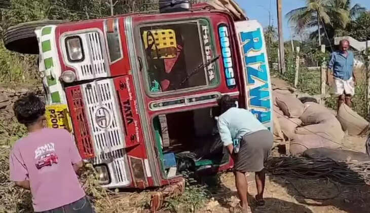 ഗോതമ്പ് കയറ്റിയ ലോറി താഴ്ചയിലേക്ക് മറിഞ്ഞു; ഡ്രൈവർ നിസാര പരിക്കുകളോടെ രക്ഷപ്പെട്ടു