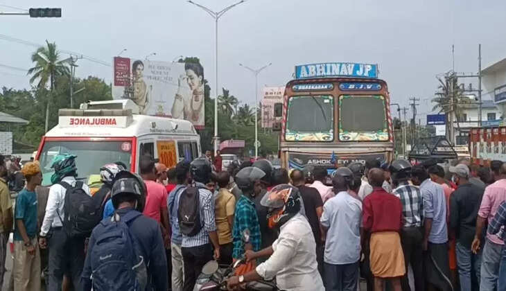 ദേശീയപാതയിൽ ബൈക്കിന് പിന്നിലേക്ക് ലോറി ഇടിച്ചുകയറി അപകടം; രണ്ടുപേർ മരണപ്പെട്ടു