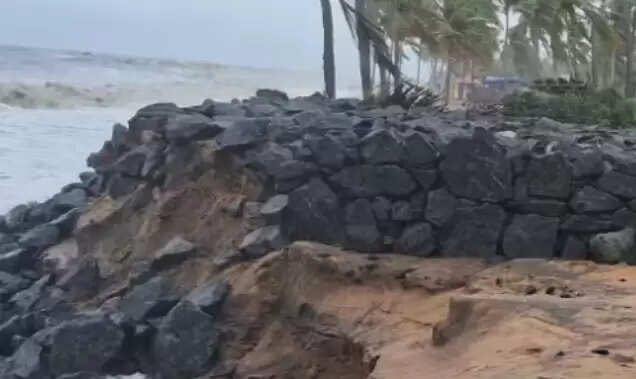 പെരിയമ്പലം ബീച്ചിലെ കടൽഭിത്തി കടലാക്രമണത്തിൽ തകർന്നു