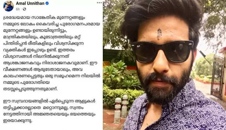 ബ്ലാക്ക് മാജിക് ചെയ്യുന്നവരോട് തനിക്കെതിരെ പ്രയോഗിക്കാൻ വെല്ലുവിളിച്ച് ലോക്സഭാ എംപി രാജ്മോഹൻ ഉണ്ണിത്താന്റെ മകൻ അമൽ ഉണ്ണിത്താൻ. ഫേസ്ബുക്കിലൂടെയാണ് അമൽ ഉണ്ണിത്താൻ പ്രതികരണം നടത്തിയത്. സാങ്കേതിക മുന്നേറ്റങ്ങൾക്കിടയിലും കൂടോത്രത്തിലും മറ്റു പിന്തിരിപ്പൻ രീതികളിലും വിശ്വസിക്കുന്നവർ ഇപ്പോഴും ഉണ്ടെന്നും അമൽ വ്യക്തമാക്കി. ഇവർ സ്വന്തം നേട്ടത്തിനായി അജ്ഞതയെയും ഭയത്തെയും ഇരയാക്കുകയാണെന്നും അദ്ദേഹം ചൂണ്ടികാണിച്ചു.