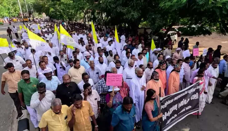 കന്യാസ്ത്രീകളുടെ അറസ്റ്റ്: രാജ്ഭവനിലേക്ക് ക്രൈസ്തവ സഭകളുടെ മാർച്ച്; കറുത്ത തുണി കൊണ്ട് വാമൂടി പ്രതിഷേധം