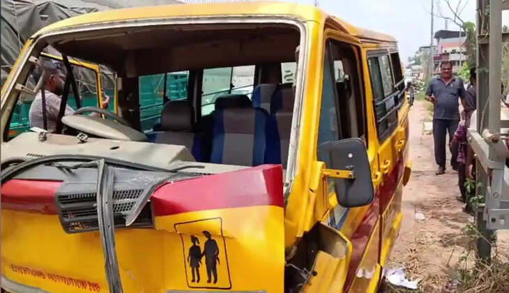 നിർത്തിയിട്ടിരുന്ന ക്രെയിനിൽ സ്കൂൾ ബസ് ഇടിച്ച് അപകടം