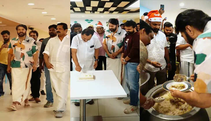 ക്രിസ്മസ് വൈബിൽ മമ്മൂട്ടി; കേക്കും ബിരിയാണിയുമായി പാട്രിയറ്റിന്റെ സെറ്റിൽ ആഘോഷം