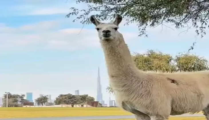 ഒരു പുൽമേടിലൂടെ മൂന്ന് ല്ലാമകൾ ഉലാത്തുന്നതാണ് വീഡിയോയിലുള്ളത്. രണ്ട് വെള്ള ല്ലാമകളും അവയ്ക്കൊപ്പം കഴുത്തിലും മുഖത്തും വെളുത്ത അടയാളങ്ങളുള്ള തവിട്ടുനിറത്തിലുള്ള ഒരു കുട്ടി ല്ലാമയുമാണ് ദൃശ്യങ്ങളിലുള്ളത്. ക്യാമറ കണ്ടപ്പോൾ കൗതുകത്തോടെ നോക്കി നിൽക്കുന്ന ല്ലാമകളുടെ ഭാവങ്ങളാണ് വീഡിയോയെ കൂടുതൽ ആകർഷകമാക്കുന്നത്. ദൂരെയുള്ള ബുർജ് ഖലീഫയുടെ കാഴ്ചയും ആകാശത്തെ വെളുത്ത മേഘങ്ങളും വീഡിയോയ്ക്ക് പശ്ചാത്തലമാകുന്നു.
