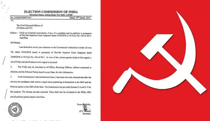 കേന്ദ്ര തിരഞ്ഞെടുപ്പ് കമ്മീഷൻ രാഷ്ട്രീയ പാർട്ടികൾക്ക് അയച്ച ഔദ്യോഗിക കത്തിൽ ബിജെപി കേരള ഘടകത്തിന്റെ സീൽ പതിഞ്ഞതായി സി.പി.എം. തിരഞ്ഞെടുപ്പ് കമ്മീഷന്റെ വിശ്വാസ്യതയെ ചോദ്യം ചെയ്യുന്ന രീതിയിലുള്ള ഈ സംഭവത്തിൽ കമ്മീഷനെതിരെ പരാതി നൽകാനാണ് സി.പി.എം തീരുമാനം. 2019 മാർച്ച് 19-ന് അയച്ച ഒരു കത്തിലാണ് ഇത്തരത്തിൽ ബിജെപിയുടെ സീൽ കണ്ടെത്തിയതെന്ന് പാർട്ടി ആരോപിക്കുന്നു.